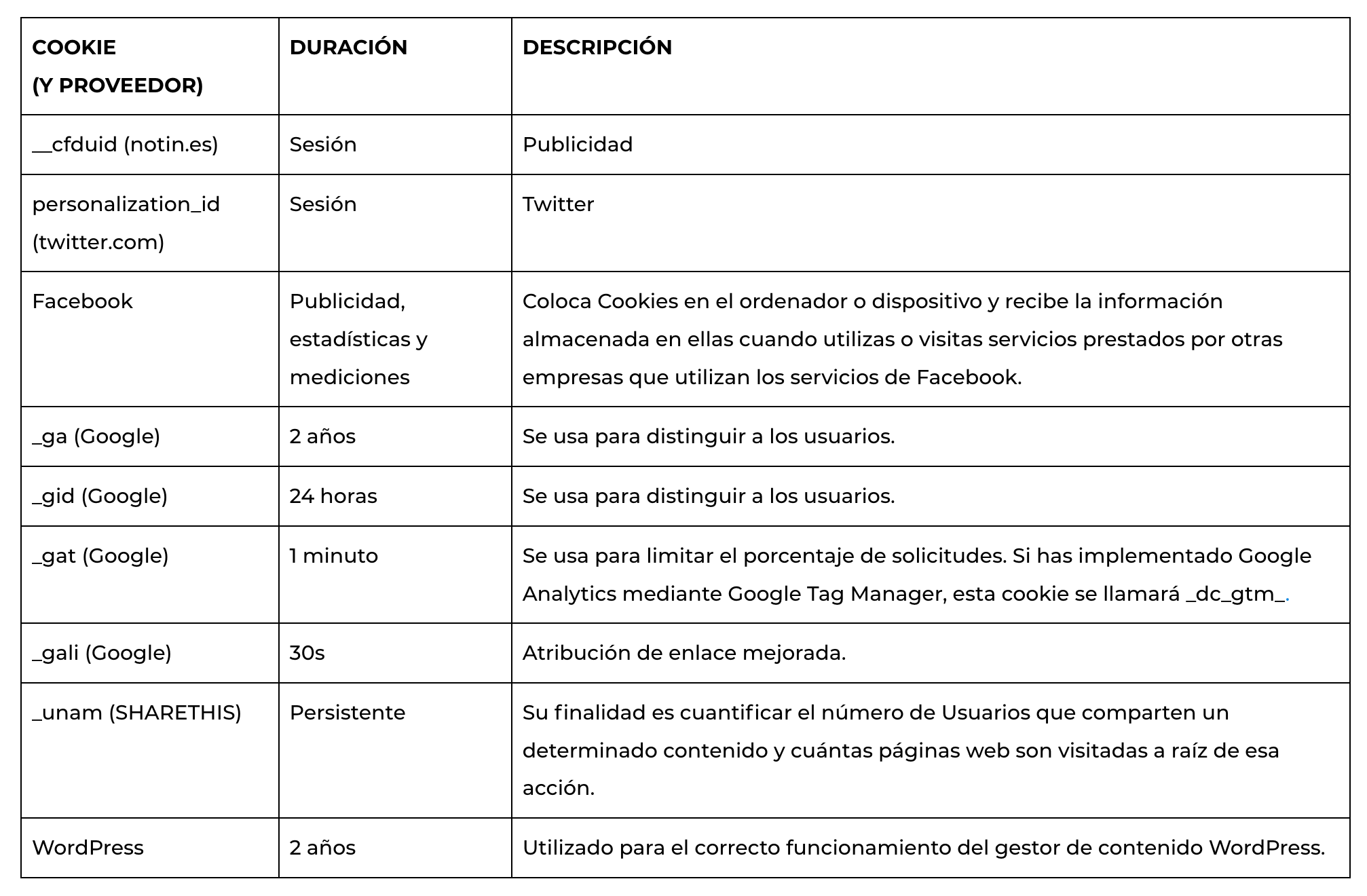 Si desea más información más sobre los tipos de cookies de seguimiento y análisis de datos de Google haga clic aquí.